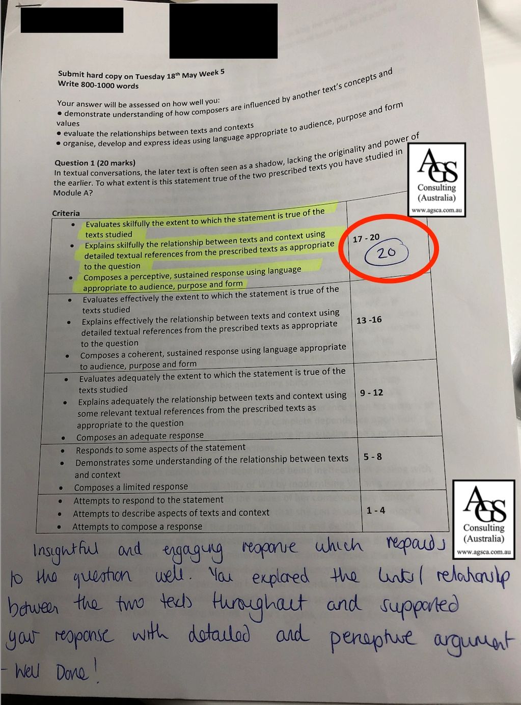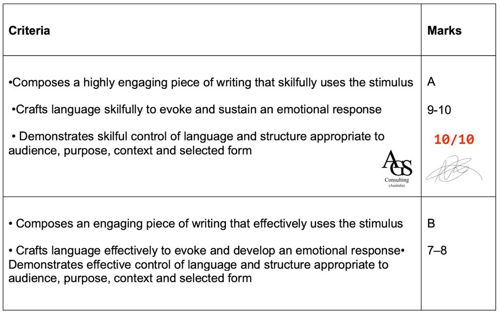 (second highest possible mark in NSW)