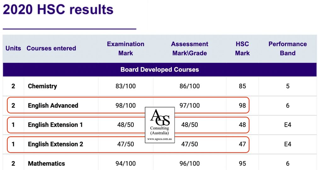 (third highest possible mark in NSW)